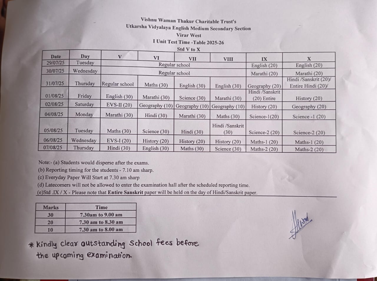 2ND UNIT TEST TIME-TABLE 2025-2026